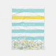 Couverture Polaire Girly Aqua Stripes avec marguerites jaunes et nom