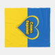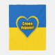 Une couverture Sherpa avec le drapeau de l'Ukraine, coeur aux couleurs ukrainiennes, et un texte disant "Gloire à l'Ukraine" en ukrainien