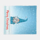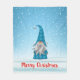 Généome mignon en costume bleu avec flocons de neige sur arrière - plan bleu