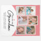 Cette couverture photo est un cadeau parfait pour garder le souvenir de n'importe quelle grand-mère. Le design offre 6 taches photo pour des photos de ses petits-enfants et du texte personnalisé pour ajouter leurs noms. Le texte supplémentaire dit : "Nous t'aimons grand-mère" et est accentué d'un petit coeur rose. Photographie © Storytree Studios, Stanford, CA