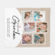 Cette couverture photo est un cadeau parfait pour garder le souvenir de n'importe quelle grand-mère. Le design offre 6 taches photo pour des photos de ses petits-enfants et du texte personnalisé pour ajouter leurs noms. Le texte supplémentaire dit : "Nous t'aimons grand-mère" et est accentué d'un petit coeur rose. Photographie © Storytree Studios, Stanford, CA
