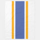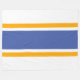 Ce design coloré et amusant présente des rayures flottantes jaune doré mettant en évidence une large bande centrale bleue vibrante contre un arrière - plan blanc.