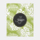 Une couverture monogramme avec un motif extensible de grands feuilles de palme sur un arrière - plan vert olive. Moderne tendance et tropical. Un cercle noir avec une bordure intérieure dorée superposée avec vos détails personnalisés à l'intérieur.