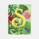 Un thème de jungle aux couleurs vives, feuilles tropicaux, couverture en toison. Personnalisez avec votre initiale. Une très belle couverture pour donner un aspect jardin, et sera très bonne dans une orangerie ou une véranda.