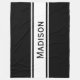 Ce design a une couleur arrière - plan noire solide avec des rayures blanches et une police moderne. Customisez le nom à l'aide du champ modèle.
