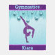 Girls Gymnastics Holiday themed Cool Purple and Aqua Blue sparkle design with the name of your gymnast! This sparkly gymnast silhouette is doing a gymnastics backbend walkover often seen during floor exercise routines!