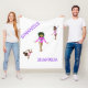Blanche polaire BLANCHE avec un gymnaste pour une belle chambre supplémentaire à une petite fille avec un nom personnalisé en violet. Également disponible dans un tapis rond blanc assorti.