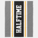 Cette conception sportive et sportive présente un texte HALFTIME en gras à l'intérieur d'une large bande noire surlignée avec deux bandes de course blanches et jaunes contre des bandes extérieures grises. Le texte de cette conception peut être personnalisé.
