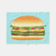 Cette couverture présente une délicieuse illustration de dessin animé d'un hamburger. Le hamburger est fait de viande, laitue verte, tomates rouges, oignon, tranche de fromage et quelques cornichons. Le petit pain a l'air frais et il y a des graines de sésame sur le dessus.