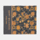 A cute and pretty Happy Halloween blanket featuring pumpkin and floral patterns in orange and black, perfect for families looking for fun and modern ways to celebrate Halloween this fall.