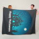 Couverture Polaire Happy Halloween Maison hantée bleue et noire