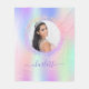 Un arrière - plan holographique, rose, violet, menthe, décoré de mousseux multicolores autour de la photo. Personnalisez et ajoutez une photo et un nom. Le nom est écrit avec un script de style écrit à la main avec des swashes. Pour que les swashes ne suppriment que le nom de l'échantillon, laissez les espaces ou émoticônes devant et après le nom.