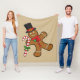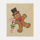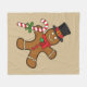 Illustration d'un homme en pain d'épice qui danse avec un chapeau haut et un sucre de canne. Pendant les fêtes de Noël, pain d'épices et sucre de canne sont toujours présents. Faire du pain d'épices est un moyen de nouer des liens avec la famille et de rendre les enfants heureux.