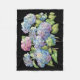 Si vous aimez des hortensias, vous apprécierez certainement le bel art floral sur cette couverture.  Des hortensias de floraison sont montrés dans les nuances délicieuses de rose au bleu à la lavande.  L'arrière - plan est noir mais peut être changé en customisant.