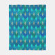Couverture polaire dans un abstrait, Moyen-Siècle moderne, imprimé chaîne de formes diamant, avec une texture striée horizontale, dans les tons turquoise / paon, turquoise, aqua, et bleu foncé, avec des accents beige