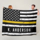Blanche Drapeau Ligne Or Mince - Etats-Unis Drapeau américain design dans les couleurs du Drapeau Dispatcher, design en détresse. Cette couverture de répartiteur est parfaite pour tous les régulateurs 911, les régulateurs de police et les régulateurs d'incendie. Cette mince couverture en or est parfaite pour un cadeau de départ à la retraite du répartiteur, le répartiteur vous remercie. Personnalisez avec le nom des répartiteurs. DROIT D'AUTEUR © 2020 Judy Burrows, Black Dog Art - Tous droits réservés. Drapeau mince ligne or personnalisé 911 Dispatcher couverture en polaire