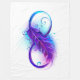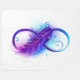 Infinity symbole with a beautiful feather painted in purple and blue bright colors on white background