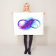 Infinity symbole with a beautiful feather painted in purple and blue bright colors on white background