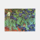 Irises a été peint en 1889 tandis que Vincent van Gogh vivait à l'asile de Saint Paul-de-Mausole à Saint-Rémy-de-Provence, en France, la dernière année avant sa mort en 1890. Un spectacle époustouflant d'iris violets avec des feuilles verts vibrants, un sol riche en terre cuite, avec un fond de marigolds orange vif et une seule iris blanche.