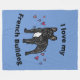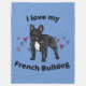 J'ADORE MON BULLDOG FRANÇAIS FLEECE BLANKET EN BLEU & NOIR.