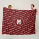 Cette couverture en molleton à thème pour filles présente le texte "I love softball" dans une police manuscrite décontractée avec des formes de coeur en blanc modelé en diagonale sur un arrière - plan rouge foncé - personnalisez avec son nom et monogramme ou lettre de varsity sur un pendentif grand cercle - arrière - plan, pendentif circulaire, et couleur de texte personnalisée peut être changée en N'IMPORTE QUELLE couleur qui contraste avec le motif de texte blanc - atz_d_zynes