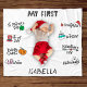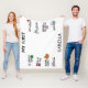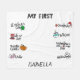 Cette couverture bébé mignonne et moderne est parfaite pour prendre des photos de votre bébé lors de ses premières fêtes importantes. Il comprend la mention "My First" sur le dessus, en lettres noires plus 8 des principaux jours fériés, chacun avec une petite icône colorée (st. Patrick's Day avec un trèfle à quatre feuilles, 4 juillet avec un casquette "étoiles et rayures", Thanksgiving avec un citrouille, Pâques avec de mignons oreilles lapins, Noël avec casquette Père Noël, Annié avec un beau gâteau, Saint Valentin et Halloween avec un fantôme amusant). Il peut être personnalisé avec le nom du bébé dans une police manuscrite noire, faisant le cadeau parfait pour les baby showers ou pour les nouveau-nés et les nouveaux parents.