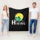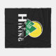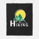 Cette couverture en toison est parfaite pour un passionné de randonnée. Le graphique est composé de montagnes avec un soleil dans l'arrière - plan et des gravures de bottes de randonnée à travers les montagnes avec les mots "Je préfère être Randonnée" ci-dessous.