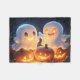 Amusez Halloween à la vie avec deux fantômes adorables et ludiques entourant des citrouilles brillants.