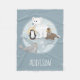 Cette couverture en toison mignonne et capricieuse pour enfants présente une scène d'hiver bleue, avec une illustration d'ours polaire, de manchot, de phoque et de morse. Il y a aussi de l'espace sur la couverture pour ajouter votre propre personnalisation : un nom dans une élégante typographie. Le cadeau de Noël parfait pour tout amoureux des animaux en cette période de fêtes !