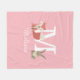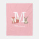 Jolie couverture bébé en polaire rose avec un renardeau de la forêt et un lapin assis de part et d'autre du monogramme et du nom. Conçu par Thisisnotme©