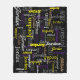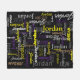 Texte de nom court typographique en jaune, gris, marron, violet foncé et blanc sur une couverture personnalisée arrière - plan noire. La couleur Arrière - plan peut être modifiée si nécessaire. Un texte graphique personnalisé amusant couverture personnalisée. Idéal pour la voiture, le camping pour les nuits d'hiver ou les sorties. Personnalisez avec votre propre nom court, lit actuellement Jordan pour l'aide sur la personnalisation et d'autres noms longueurs s'il vous plaît contactez-moi. D'autres options de couleur sont également disponibles dans mon magasin. © Art et design par Sarah Trett pour www.mylittleeden.com