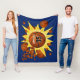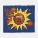 Cette couverture en toison à thème basket-ball pour sa salle de basket-ball comporte une "explosion" de boules de basket de tailles différentes et des formes d'étoiles de style comique de couleur or sur un arrière - plan bleu personnalisable - personnalisez avec le nom de l'athlète et le numéro de maillot - katz_d_zynes