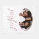 Joyful Pastel Pink Script Noël Holiday Photo Blanket. Simple et moderne souhait joyeuse dans un script rose tendance sur un arrière - plan blanc. La photo est dans un cadre ovale - ajoutez votre photo au modèle.