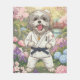 A charming illustration of a brave Shih Tzu puppy dressed in a traditional Judo uniform (Judogi) with a black belt. Set in a peaceful Japanese garden filled with cherry blossoms and zen vibes. Perfect for martial arts fans, dog lovers, and anyone who appreciates cute, aesthetic Japanese-themed art.