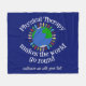 La pinte fait le monde s'attaquer autour de la couverture avec votre société faite sur commande au fond. Un cadeau mignon de Noël de physiothérapie pour votre physiothérapeute préféré. Comporte un groupe de personnes tenant des mains autour de la terre bleue et verte de planète. Venez ensemble pour apporter une modification en aidant des personnes.