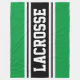 Cette conception sportive et sportive présente un texte LACROSSE en gras à l'intérieur d'une large bande noire surlignée avec deux bandes blanches contre des bandes extérieures vertes. Le texte et les couleurs de ce design peuvent être personnalisés.
