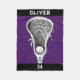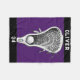 Joueur de crosse ou couverture d'entraîneur avec design stick-and-ball sur arrière - plan violet. Pour personnaliser modifier le texte afin d'ajouter le nom et le numéro d'équipe du joueur laxiste.