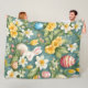 Couverture Polaire lapins, fleurs de printemps et oeufs de Pâques. Pe