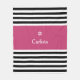 Une couverture en toison motif à bandes larges horizontales modernes en noir et blanc avec un accent rose profond. Personnalisez en ajoutant votre nom sous le logo chic de la marguerite rétro.
