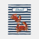 le crabe rouge au-dessus des bandes bleues marines; parfait pour les regards nautiques ou côtiers.