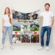 Photo Collage de photos moderne 'Sky's Finest Pilot' Blanket en polaire avec 8 photos de votre choix, le texte 'Sky's Finest Pilot' en police de script, une illustration d'avion bleu qui peut être customisée à une couleur différente, un arrière - plan de carte du monde, et un message sincère 'We Love You Many [Names]' avec des coeurs rouges de chaque côté. Parfait pour un anniversaire de pilote ou une occasion spéciale ! Copyright Soar in Style Designs LLC.