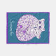 Deux petits animaux blancs de caresse de léopard de neige avec des accents pourpres et taches sur un arrière - plan bleu cyan sont étreignants et se poussant du nezs. Personnalisez-le avec votre propre nom fait sur commande. Art animal original par Alicia Marie.
