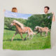 Jument de Haflinger avec les poulains vifs fonctionnant ensemble à travers un pâturage dans un beau paysage. Une race flaxen blonde de cheval de châtaigne, également appelée haffies ou avelignese, photo prise par Katho Menden. Cette grande couverture confortable molle d'ouatine est une idée de cadeau pour des amants http://www.zazzle.com/kathom_photo de cheval -