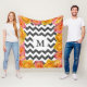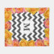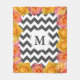 Des chevrons blancs de style moderne, des tirages mixtes et des fleurs de rose rose rose et jaune, une couverture en toison. Il inclut votre lettre monogramme personnalisée dans le centre.
