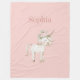 Couverture Polaire Licorne Fleurie Rose Pâle