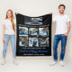Offrez à votre policier préféré qui part à la retraite un cadeau et un souvenir mémorable. Certains des souvenirs préférés de vos policiers sont avec ses frères et sœurs en bleu. Couverture de retraite de police Thin Blue Line - Drapeau américain de couleur de drapeau de police, design noir et bleu moderne. Cette couverture de police personnalisée avec un collage de photos est parfaite pour célébrer votre agent de la loi à la retraite, les cadeaux de retraite de police, le cadeau de retraite de l'agent de la loi. Personnalisez ces couvertures de retraite de police avec 6 de vos photos préférées, le rang et le nom du policier, le service de police, le message et la date de retraite.