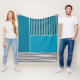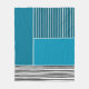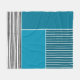 Cette couverture en toison moyenne a une conception géométrique d'un grand rectangle turquoise dans le coin supérieur gauche, des bandes turquoises plus foncées dans le coin supérieur droit, un rectangle turquoise plus léger sous les bandes, et des lignes noires dans le fond. Si vous aimez le design mais préférez différentes couleurs, envoyez-moi un message.