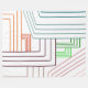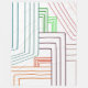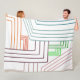 Cette grande couverture en toison a un design art déco de lignes en violet, rose, orange et bleu.