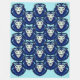 Arrière - plan bleu vif avec énote de lion bleu pâle répétée.