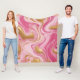 Fleece Blanket immergé dans un liquide rose et blanc brillant, parsemé d'or, recouvert d'une patine lisse et soyeuse. Au-dessus de ces gouttes, des particules de parties scintillant d'or brillent doucement, comme flottant à la surface, ajoutant une touche élégante et luxueuse au design.